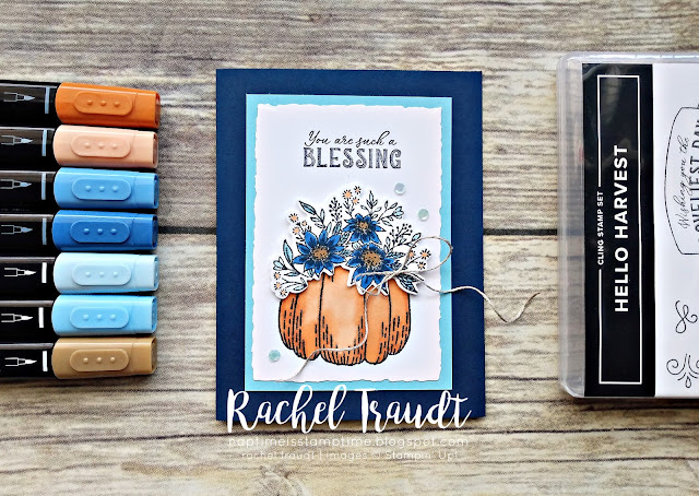 The Hello Harvest Bundle has been popular this year, and it's easy to see why. The sentiment I used on this card is my favorite in the set, and I just love the flowers that fit right on top of the pumpkin!